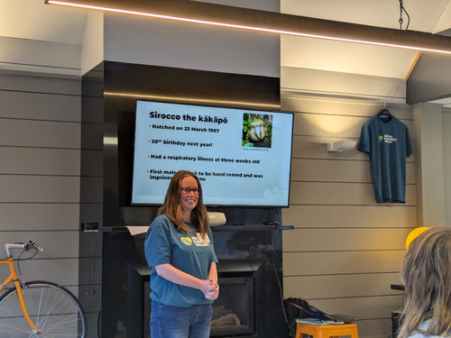 We also heard from Beth with her non-human inspiring conservationist, Sirocco Kākāpō! Sirocco shot to fame in 2009 when he appeared on a BBC tv episode with Stephen Fry, but his fame really helped the kākāpō’s cause. He continues to inspire us to learn more about kākāpō, and to trap predators. Kākāpō used to be found everywhere, up and down the country but now they only live in predator-free areas.
